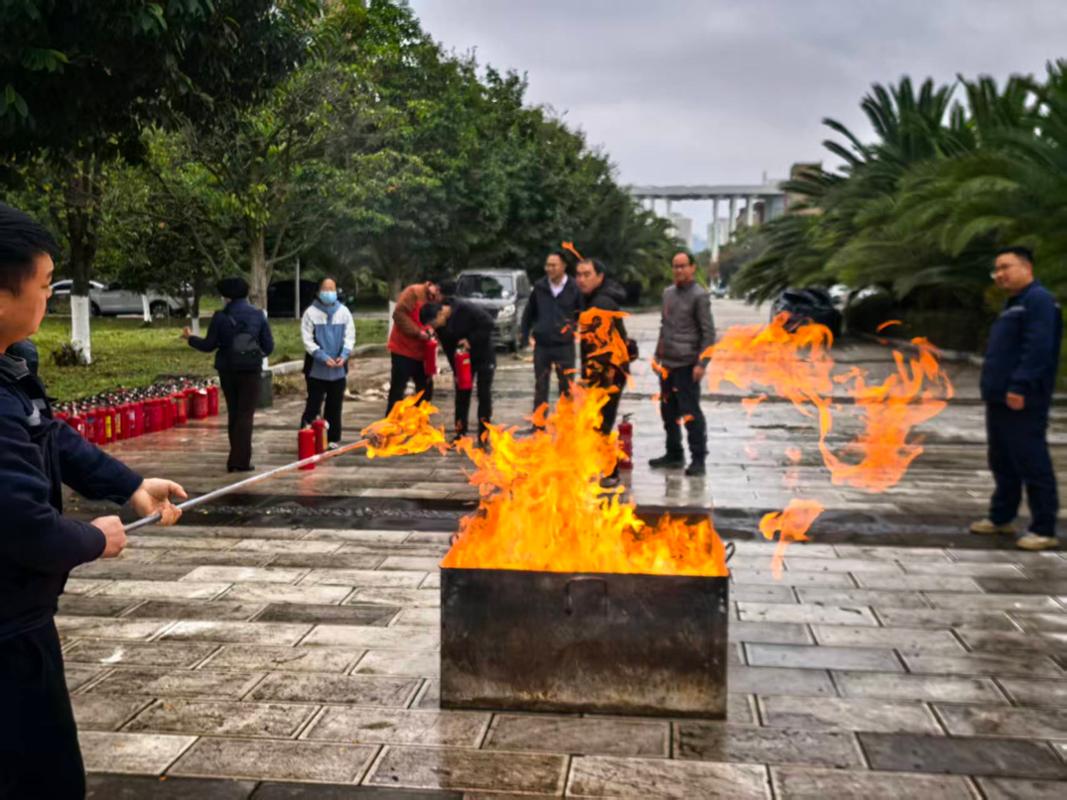 讲座结束后,全体参会人员迅速移步至建工楼前小广场的指定演练区域,开展灭火器实操演练。演练现场,张国民教员首先拆解讲解了灭火器的构造、灭火原理及核心操作要点,并亲自示范“提(提灭火器)、拔(拔保险销)、握(握喷管)、压(压手柄)”四字使用口诀,强调对准火焰根部喷射的关键技巧。在认真观摩并确认掌握要领后,师生们分组上阵,面对模拟火盆中“熊熊燃烧”的火焰,大家沉着冷静,严格按照操作步骤展开扑救,动作迅速规范,均成功将“火源”扑灭。整个演练过程紧张有序、配合默契,切实检验了理论学习成果,达到了“以练促学、以练促防”的预期效果。